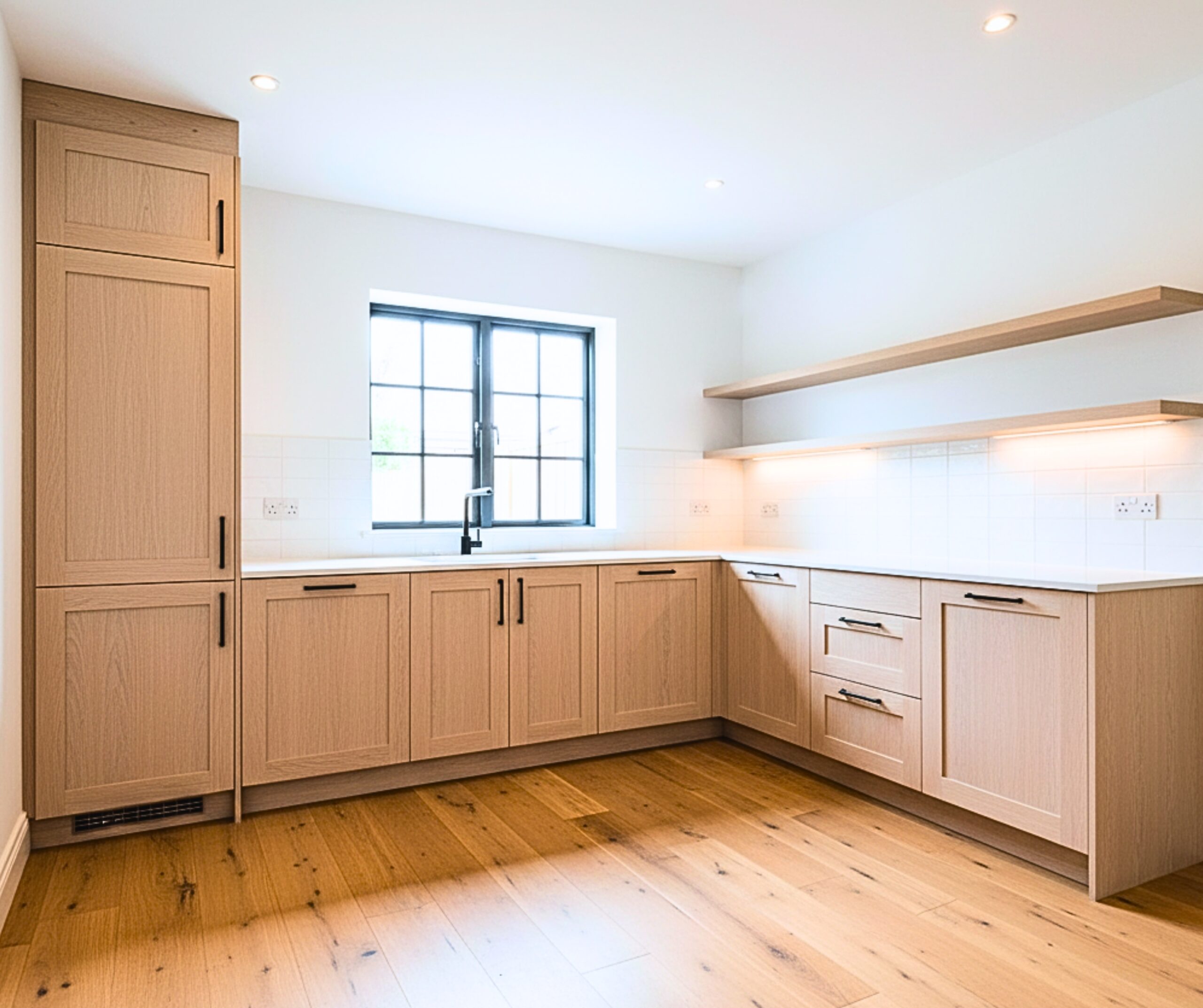We specialise in bespoke cupboards and shelving, door hanging and adjustments, kitchen worktop and unit installations, door and lockre placements, laminate and wood flooring, and decking — all delivered with precision and care.